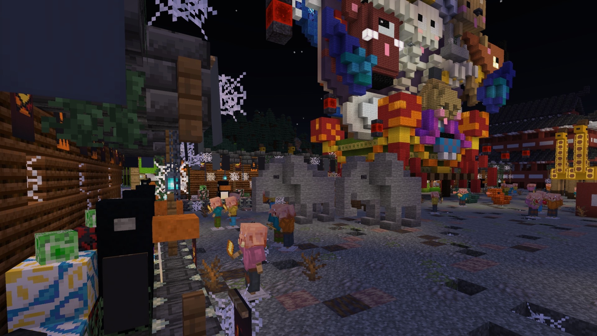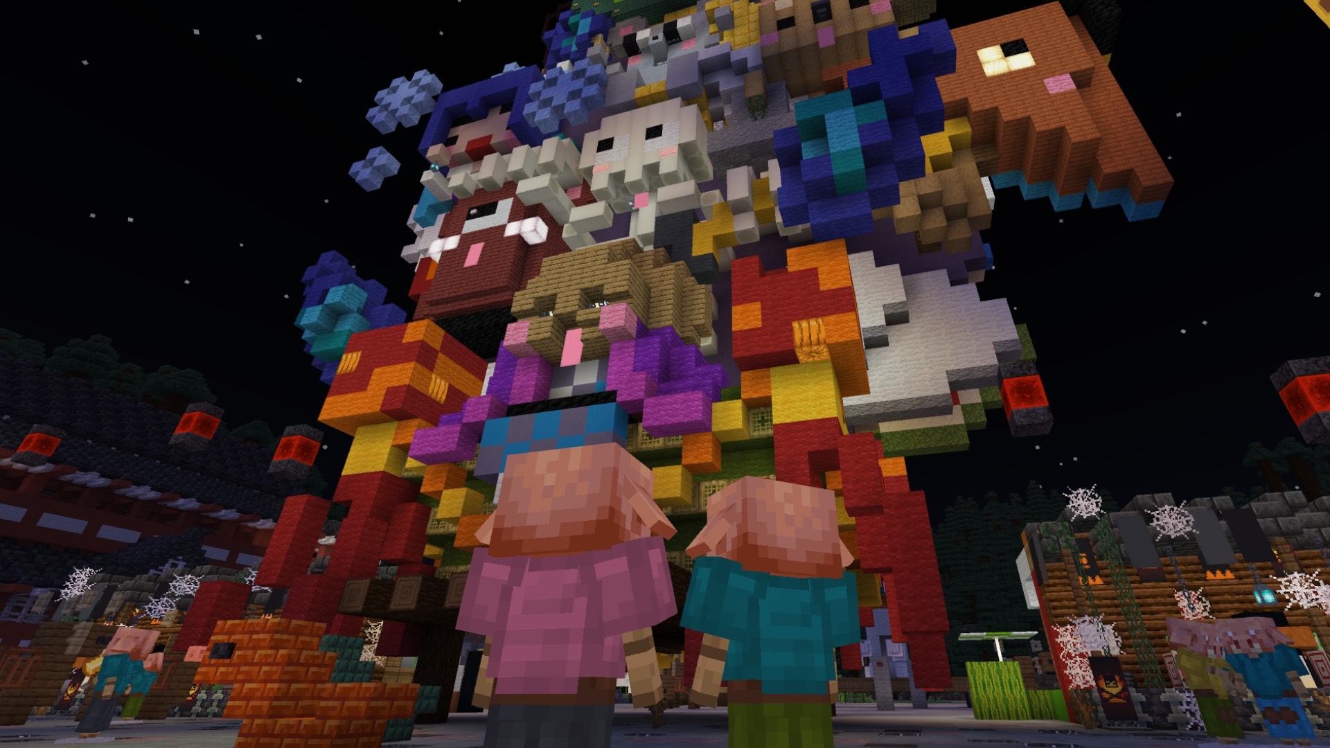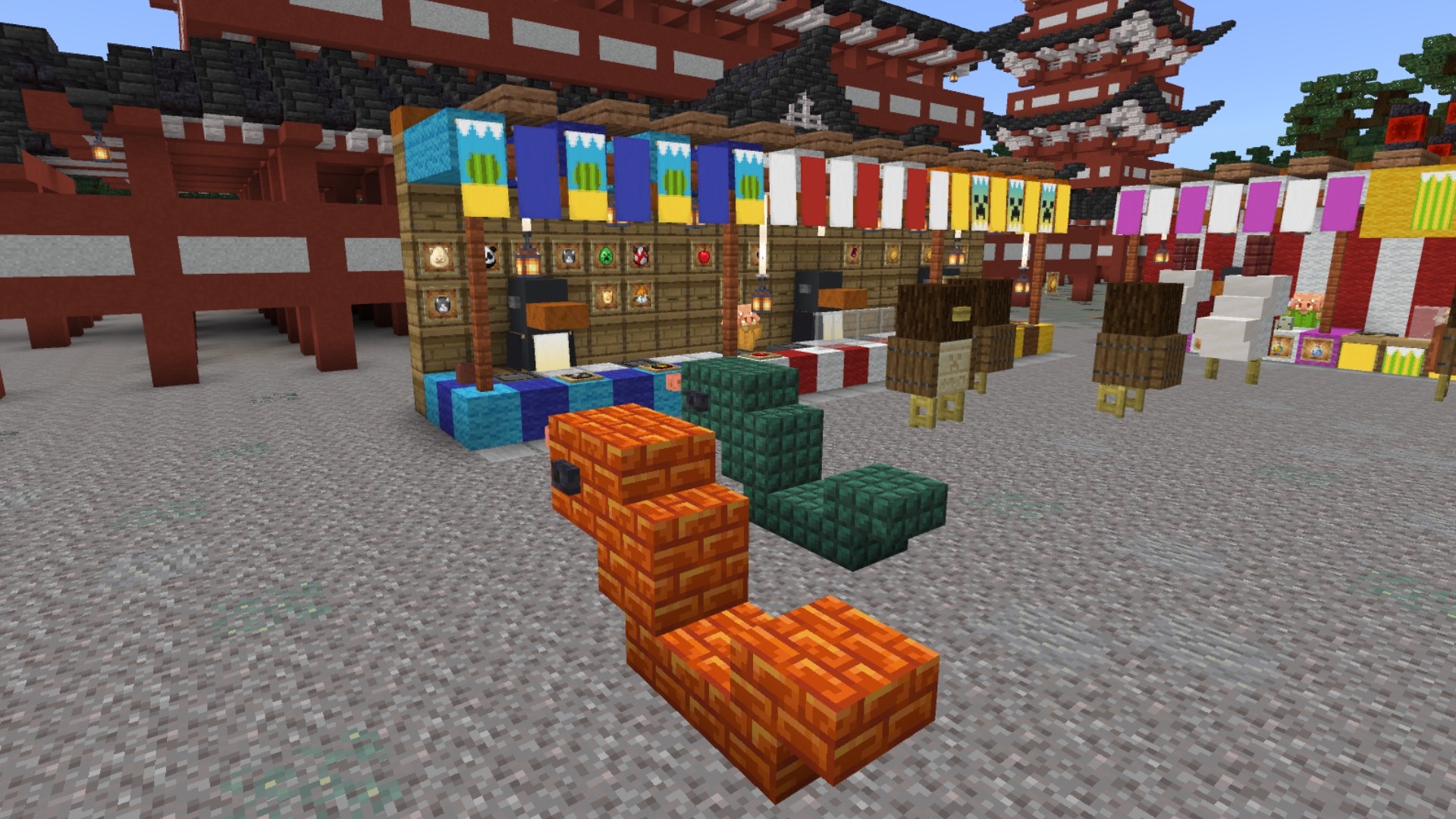 昼は動物たちのお神輿でかわいく賑やか、夜は「動物百鬼夜行」のお神輿として妖しく光る――その対比が本当にお見事! 神輿の正面と背面で対になるモチーフを見比べたり、お祭りを楽しむ動物たちが何をしているのか想像したり… お祭りの賑わい、屋台の人々の様子、夜の幻想的な空気感などすべてが丁寧に表現されていて、見るたびに新しい発見がある作品です。
